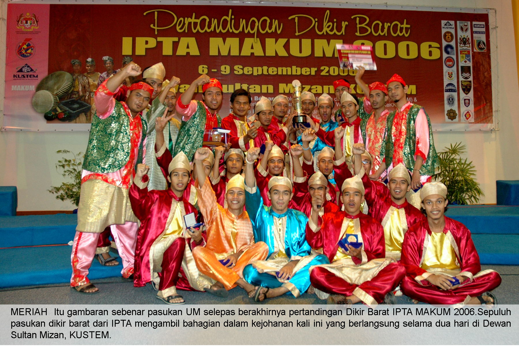 080906 | PERTANDINGAN DIKIR BARAT IPTA MAKUM 2006 By roslan September 8, 2006 Event No Comments [Show slideshow] 1234► Related Posts 130518 | GRAND FINAL CHORAL SPEAKING By roslan 280219 | MESYUARAT JKN CRUA BILANGAN1 2019 By roslan 200413 | PERTANDINGAN GAMELAN MELAYU PRINGKAT KEBANGSAAN 2013 By roslan About The Author roslan